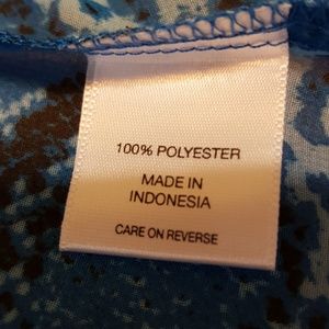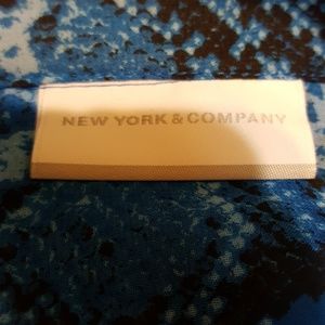 Pretty blue and black long sleeve sheer blouse by New York & Company. No flaws. In great condition. Zoom in on pics to see for yourself. Cute with a cami or braletter under it. Pockets on the top are strategically placed so they cover your bust. I cut out the size tag because it irritated my skin but it's a size Small. See approx measurements in pics.