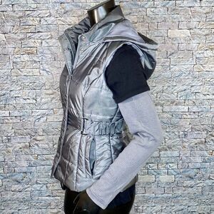 New York & Co Silver Puffer Vest w Removable Hood Size XS Zip Button Closure
