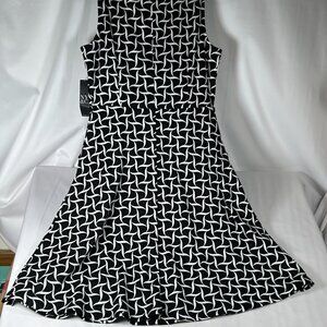 New York & Co Small Sleeveless Midi A Line Dress With Pockets Black White NWT