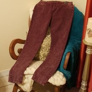 New York & Co Soho distressed corduroy burgundy jeans size 4