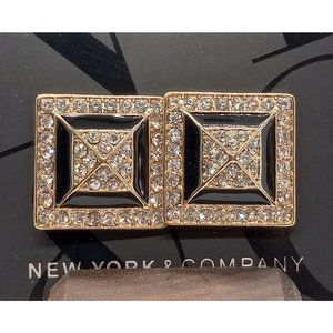 New York & Co Statement Post Gold Black Crystal Square Pierced Post Earrings New
