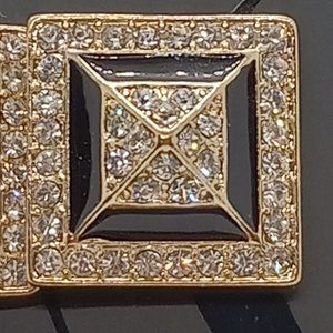 New York & Co Gold Black Crystal Square Pyramid Pierced Post Earrings NWT