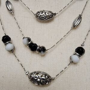 New York & Co Station Necklace Black White Silver Tone Triple Strand Beaded