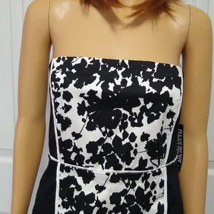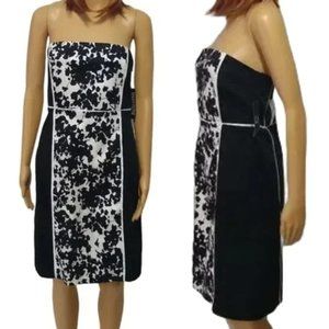 New York & Co Strapless Black White Floral Color Block Party Dress Size 10 NWT