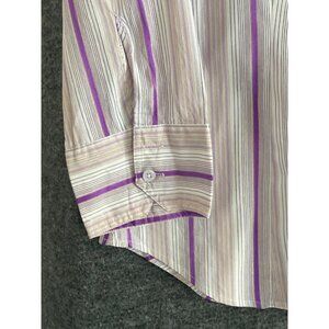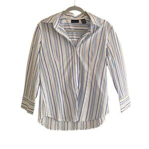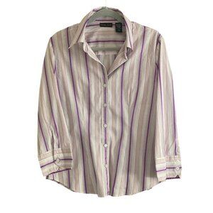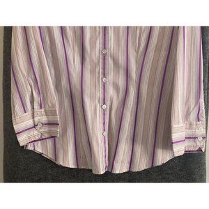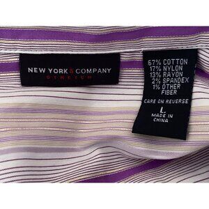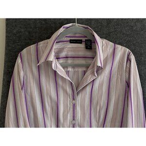 New York Co Stretch Blouse Stripe LS Button Front Women Large Lot of 2