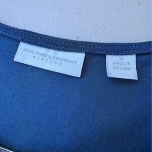 New York & Co Stretch Blue Halter Tank Blouse Metal Hardware Women’s Med