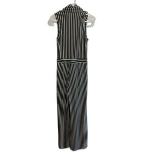 New York & Co. Striped Sleeveless Collared Jumpsuit Black White Small Chic Women