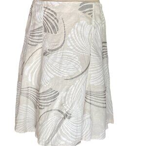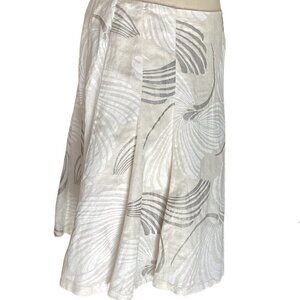 New York & Co Sz 10 Linen Rayon Full Swing Skirt Beige White Silver 176M