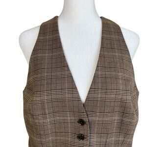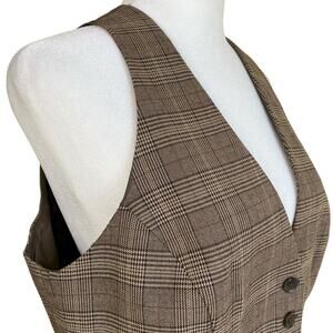 New York & Co Sz 10 Vtg Glen Plaid Twill Fitted Vest Button Front Classic Dressy
