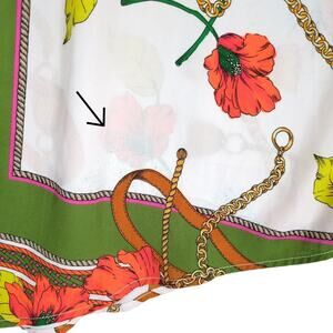 -Features: Floral luxury icon print designs, tort lucite chain link straps (removable), button keyhole & button, pointed handkerchief bottom hem