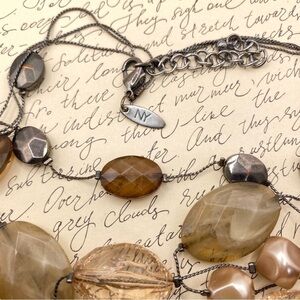 New York & Co Triple Strand Acrylic Bead Necklaces. Measures 17" + 2.5" extender chain. Has gunmetal chain and extender. Nice necklace with neutral color acrylic beads for fall. Very good condition, doesn't show any wear. #7