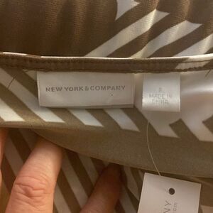 Get ready to turn heads with this stunning New York & Co Women's Size Small Brown Sunshine Yellow Tie Waisted Wrap Midi Dress.  Designed to flatter your figure, this dress features a tie waist that cinches in at the waistline, creating a beautiful hourglass silhouette.  The wrap style adds a touch of elegance, while the midi length keeps it classy and sophisticated.  The combination of brown and sunshine yellow creates a vibrant and eye-catching color palette that is perfect for any occasion.  Whether you're attending a summer wedding or going out for a brunch date, this dress is sure to make a statement.  Made with high-quality materials, it offers both comfort and style.  Pair it with your favorite heels and accessories to complete the look. Upgrade your wardrobe with this must-have dress today!