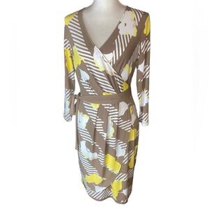 New York & Co Wm’s Sz Sm Brown Sunshine Yellow Tie Waisted Wrap Midi Dress