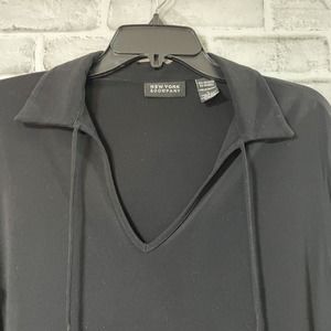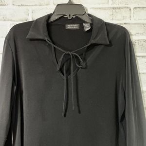 New York & Co. Women’s Long Wide Sleeve Collared Tie Stretch Blouse Black Size L