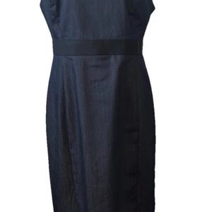 New York Company Women's Dark Blue Denim look Minimalist Sheath Dress Fully Lined. Tailored design for a flattering fit. Slightly stretchy waist. Dress up or down. Size Large Midi/Tea length