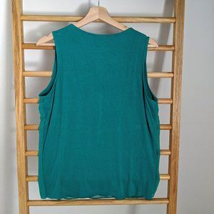 Comfortable and fun top for a night out. Top is green with a silver zipper to create a v-neckline. Can create a deep-v or a small v-cut for when you want to be more conservative.