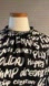 New York & Co black white SCRIPT blouse STATEMENT SLEEVES crew smocked neck Lrg