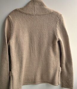 New York & Company cardigan with front pockets, gently worn. Just a little fray on right back arm, otherwise overall excellent condition oh, nice heavy material. See pics for wear.