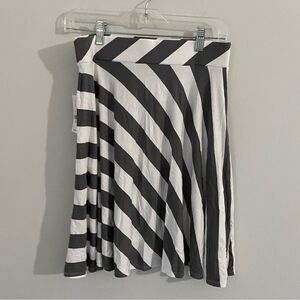 Gray and white stripes. Elastic waist. Asymmetric hemline.