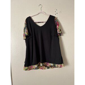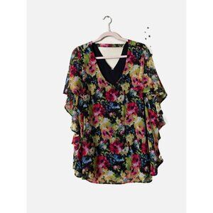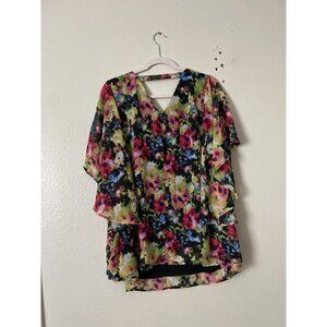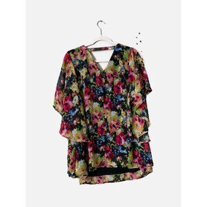 New York Collection Women V-Neck Multicolor Lined Pullover Kimono Blouse Size XL