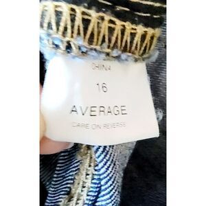 These jeans are equipped with a zip and button closure, making them easy to put on and take off. The sleek and modern design of these jeans is perfect for any American-themed outfit. These jeans are machine washable and come in size 16, with a waist size of 34 inches and an inseam length of 31 inches.