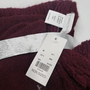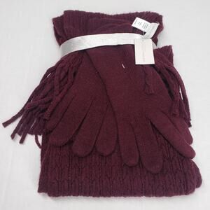 New York & Company 2 Piece Metallic Thread Scarf Gloves Set Burgundy Cable Knit