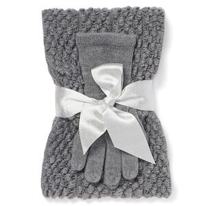 New York & Company 2pc Popcorn-Knit Scarf and glove set nonsized (black or gray)