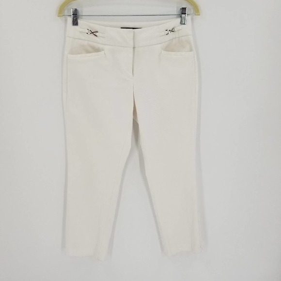 New York & Company 7th Ave Suiting Crops Skinny Jeans 2 White Pockets Zip Fly