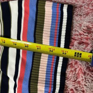 New York & Company 7th Avenue 3/4 Sleeve Striped Multicolor V Neck Sweater