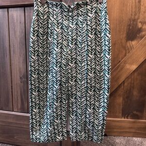 New York & Company Abstract Print Midi Skirt | Green Black White | Size 0
