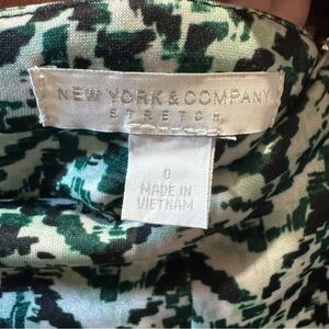 Add a pop of pattern to your wardrobe with this New York & Company stretch midi skirt. Features a bold green, black, and white abstract print on a comfy, figure-flattering silhouette. Made from soft, stretchy fabric (94% polyester, 6% spandex). High-waisted fit, size 0. Perfect for work, date nights, or casual outings!