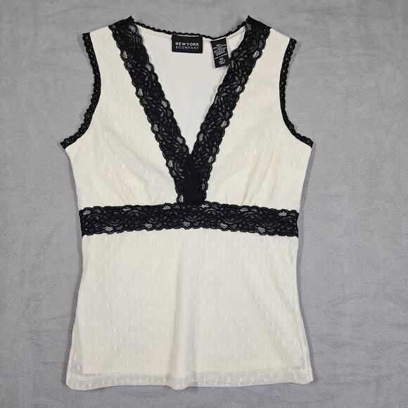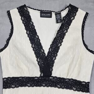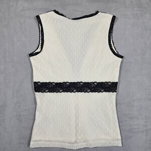 New York & Company Babydoll Tank Womens XS Ivory Black Lace Coquette Y2K Preppy