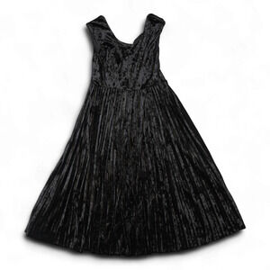 New York & Company Black Crushed Velvet Dress Fit & Flare Pleated Skirt Sleeveless Sz M EUC