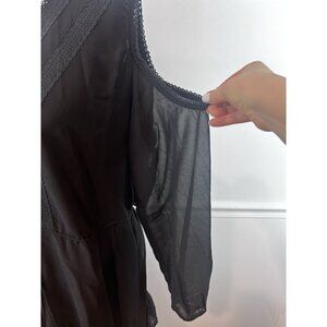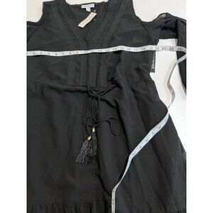 New York Company Black Dress Long Sleeve Embroidered Open Shoulder Lined Large