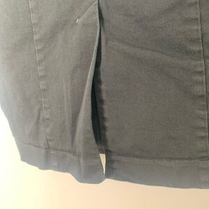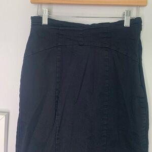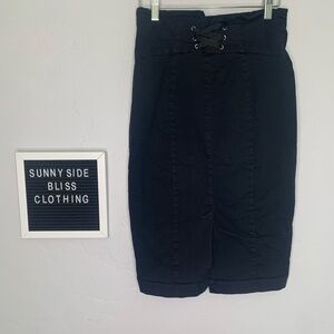 This is a black pencil skirt with a side zipper and a lace up detailing on the back. It’s a size 4 in great pre owned condition no stains. (See Photos for Details).