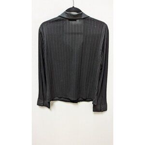 New York & Company Black Sheer Ribbed Blouse. Size XL. Gently used, with minor defects (if any). It is sheer with a ribbed texture along with long sleeves and a button-down front.