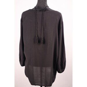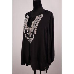 New York & Company Black Tunic with Silver Embellishments Boho Style Size Large