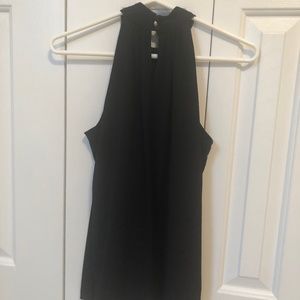 New York & Company Black Women's Open Back Halter Top W Built In Bra(Size Small)
