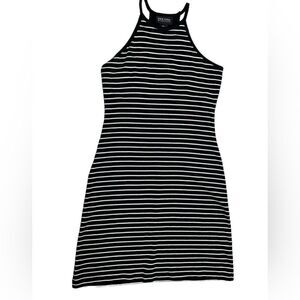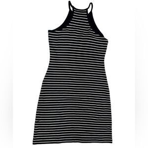 New York & Company Black and White Striped Bodycon Mini Summer Dress Halter Top