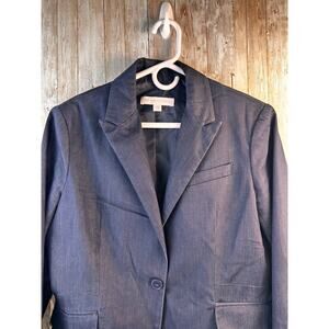 New York & Company Blazer Jacker Womens 12 Navy Blue Stretch Chambray Corpcore