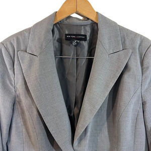 New York & Company Blazer Jacket Plus Size 16 Gray White Pinstripe One Button