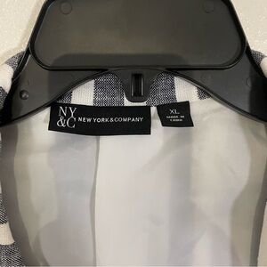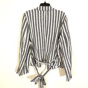New York & Company Blazer Nautical Tie Waist Blue Striped Linen Blend Open Sz XL