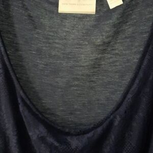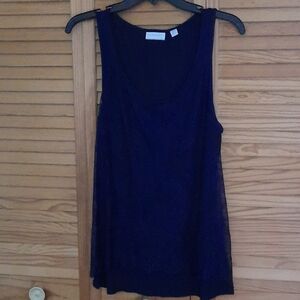 New York & Company blue lace tank top. Body 100% rayon. Lace 100% nylon. Soft. Size medium. Measurements are approximate. Chest 17 inches. Length 15 inches. Offers welcome.