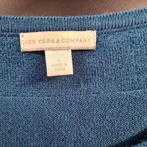 New York & Company Blue Large Stripe Sweater Large with 3/4 Sleeve