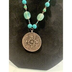 New York & Company Boho Southwestern Turquoise And Medallion Statement Necklace