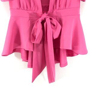 New York & Company Bow Waist Ruffle Hem Top Women's Plus Size 2X Pink Party