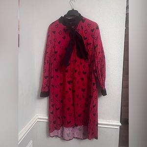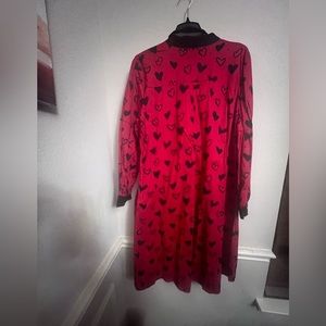 New York & Company Bow-Tie Neck, Hi-Lo Hearts Dress XXL Black/Red