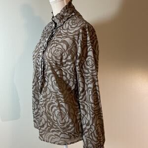 New York & Company Brown and Gray Button Down Semi-Sheer Blouse Size Large