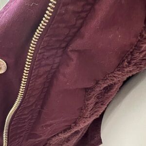 New York & Company Burgundy Anorak Jacket with Faux Fur