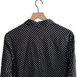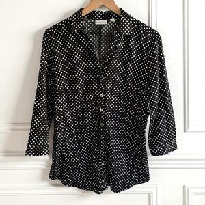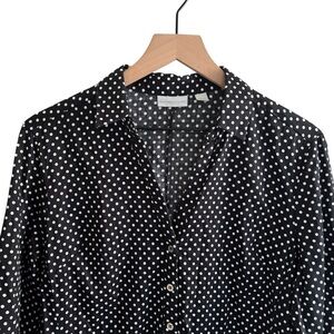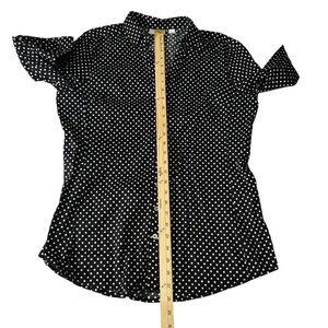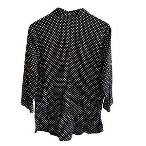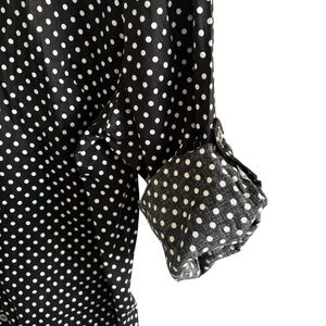 New York & Company Button Up Shirt Polka Dot Roll Tab Office Casual Size Large
